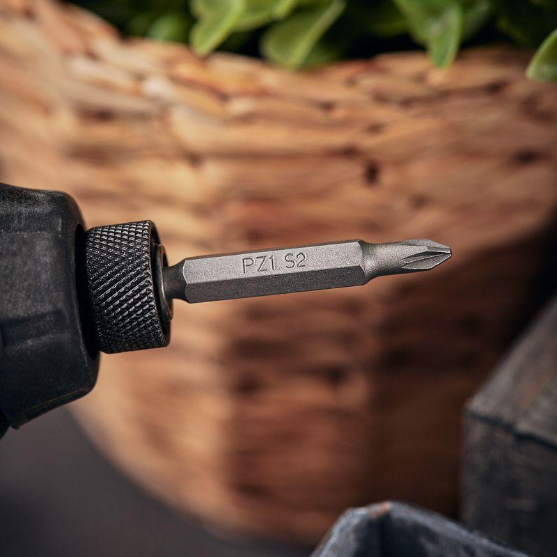 Бита PZ1 используется в качестве сменной насадки на шуруповерт или отвертку-адаптер для работы с крепежом.