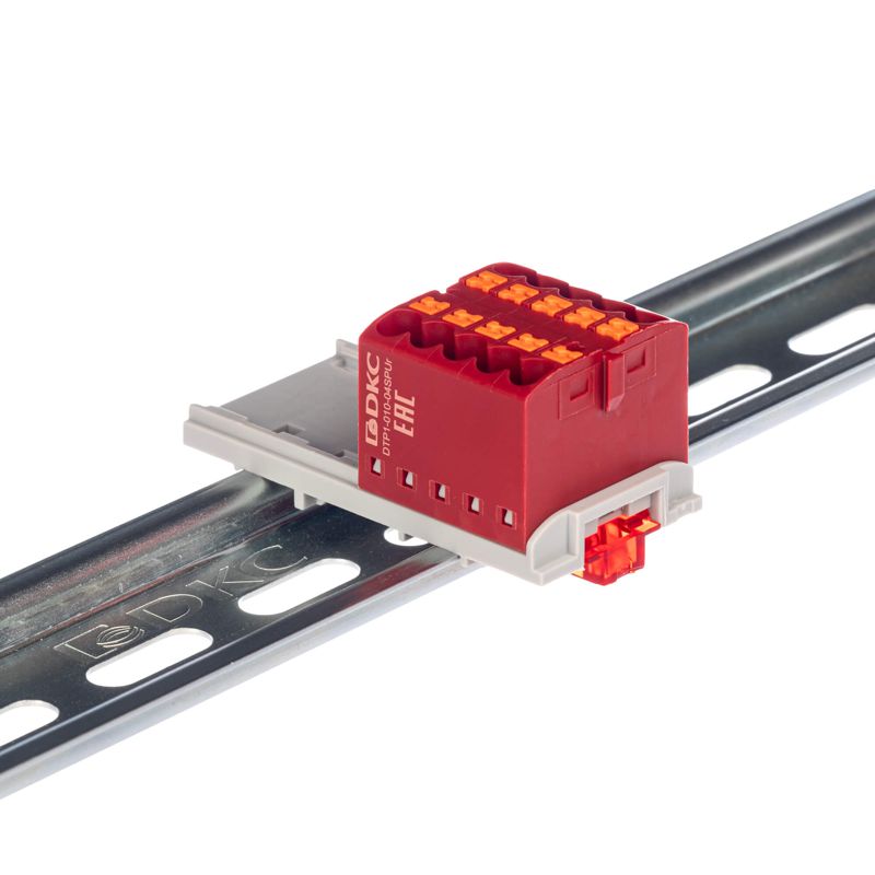 DTP1-010-04SPUR | Блок распределительный зажим push-in 10 точек подключения 2.5кв.мм красн. DKC