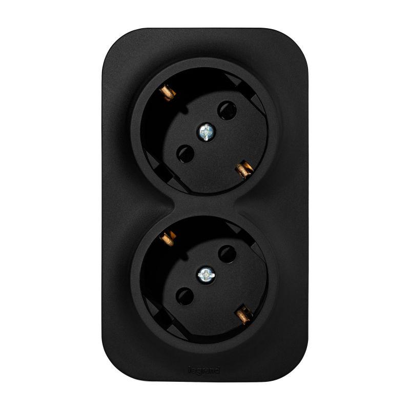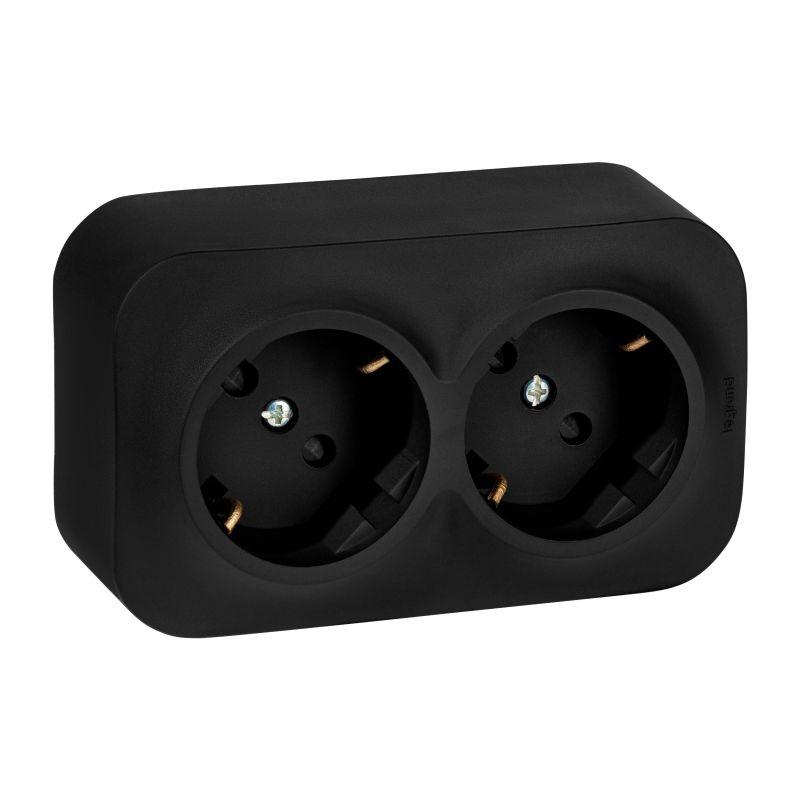 Розетка 2-м ОП Quteo 16А IP20 250В 2х2P+E с заземл. защ. шторки черн. матов. Leg 782475