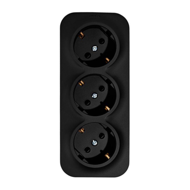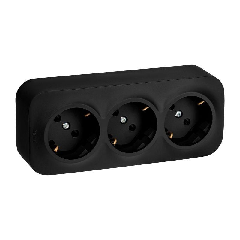 Розетка 3-м ОП Quteo 16А IP20 250В 3х2P+E с заземл. защ. шторки черн. матов. Leg 782473