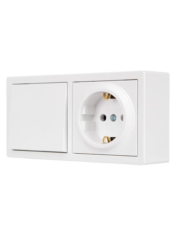 Блок выключатель 1-клав. и розетка 1-местн с заземл. LETO белый горизонталь LEZARD 752-0200-170BAP