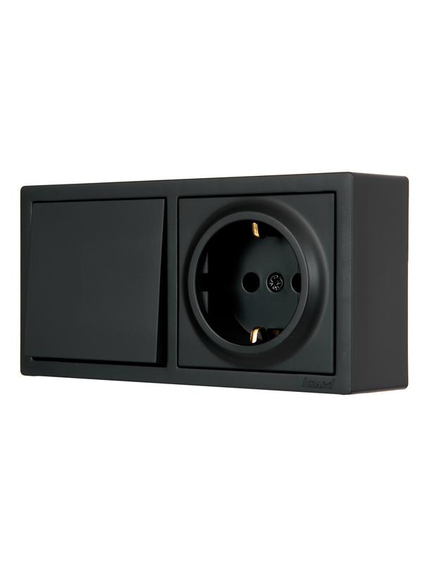 Блок выключатель 1-клав. и розетка 1-местн с заземл. LETO черн. бархат горизонталь LEZARD 752-4200-170BAP