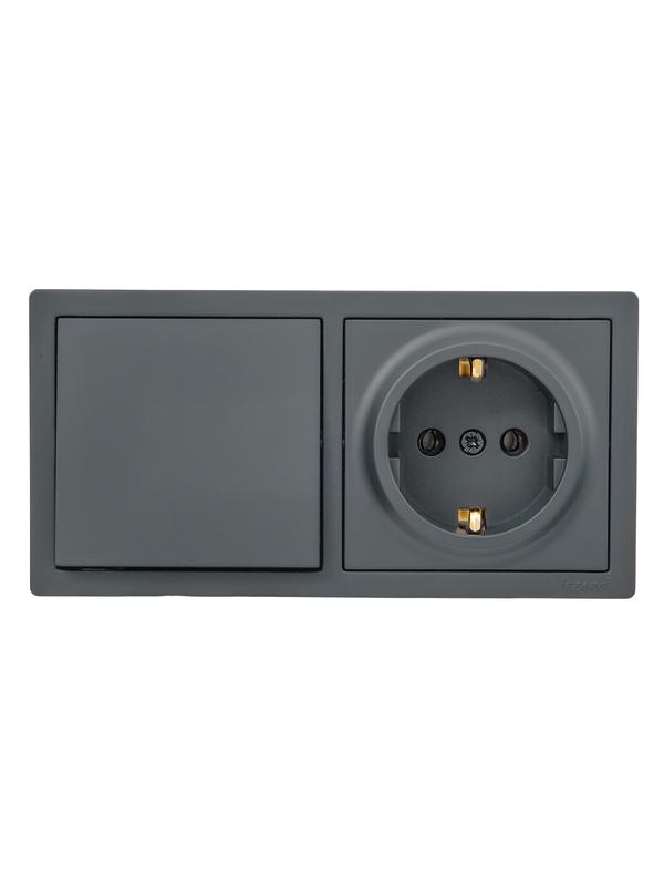 Блок выключатель 1-клав. и розетка 1-местн с заземл. LETO графит горизонталь LEZARD 752-3400-170BAP