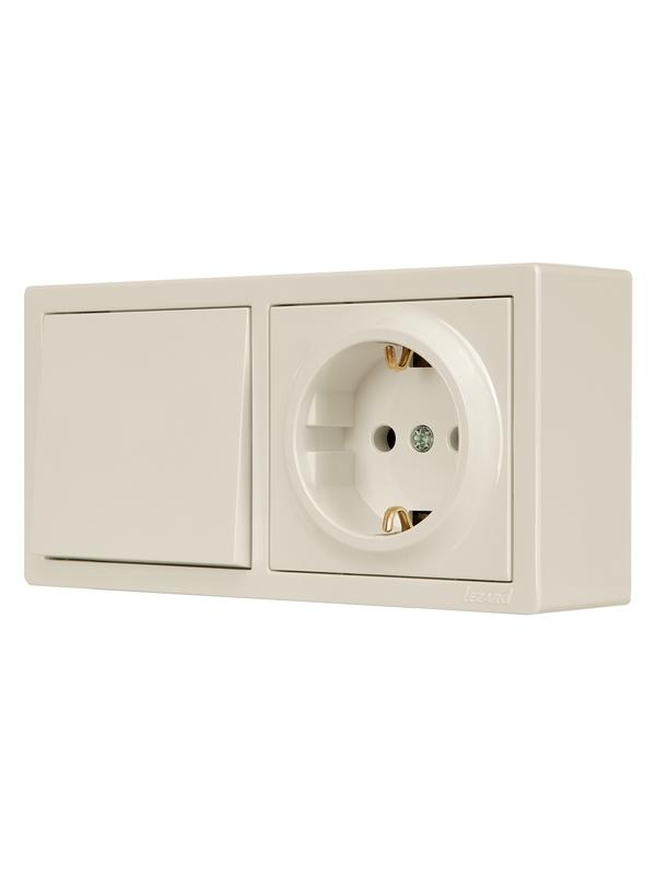 752-0300-170BAP | Блок ОП LETO (1-кл. выключатель + 1-м розетка с заземл.) горизонт. крем LEZARD
