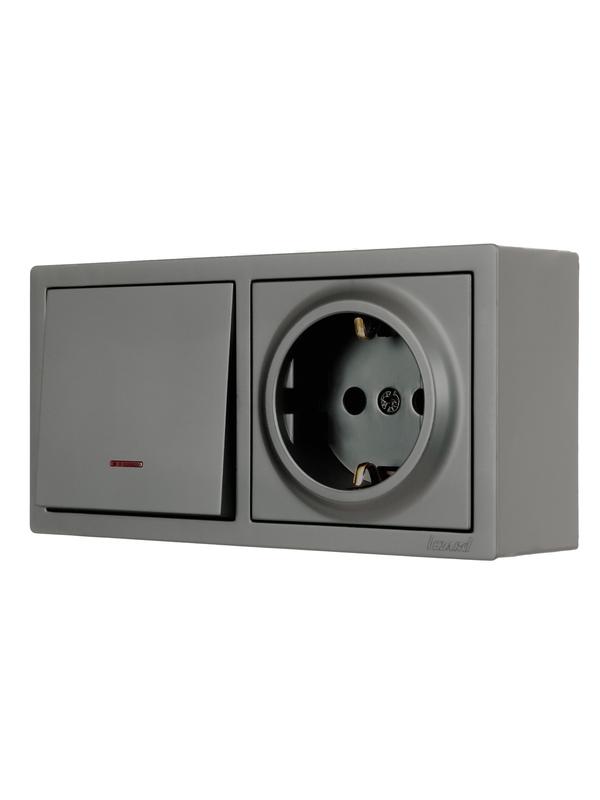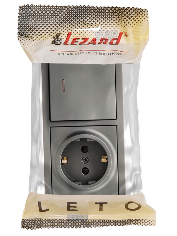 752-3500-170BIP | Блок ОП LETO (1-кл. выключатель с индикацией + 1-м розетка с заземл.) горизонт. платина LEZARD