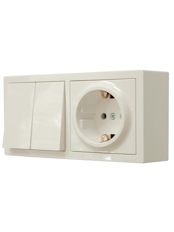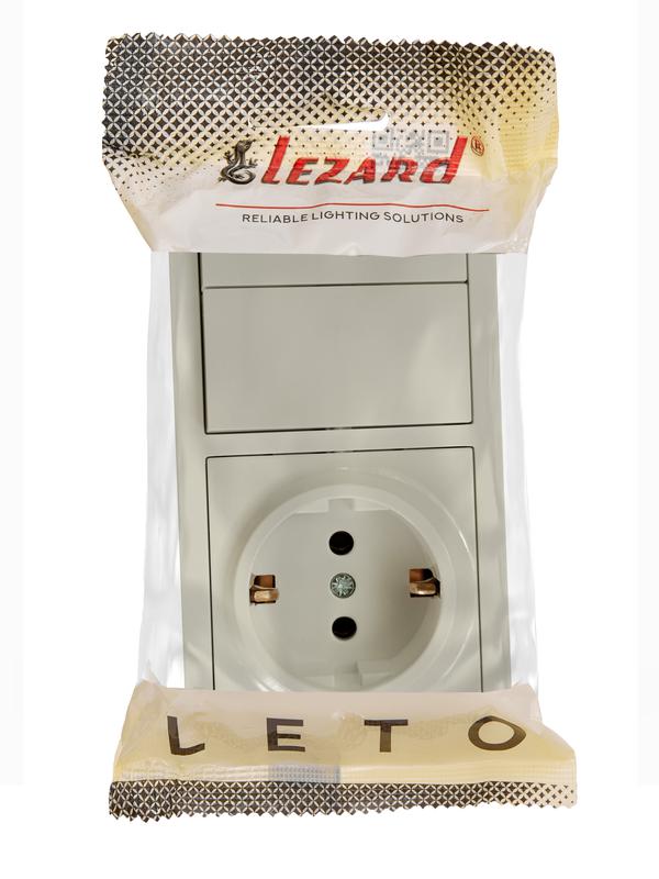 752-0300-170BKP | Блок ОП LETO (2-кл. выключатель + 1-м розетка с заземл.) горизонт. крем LEZARD