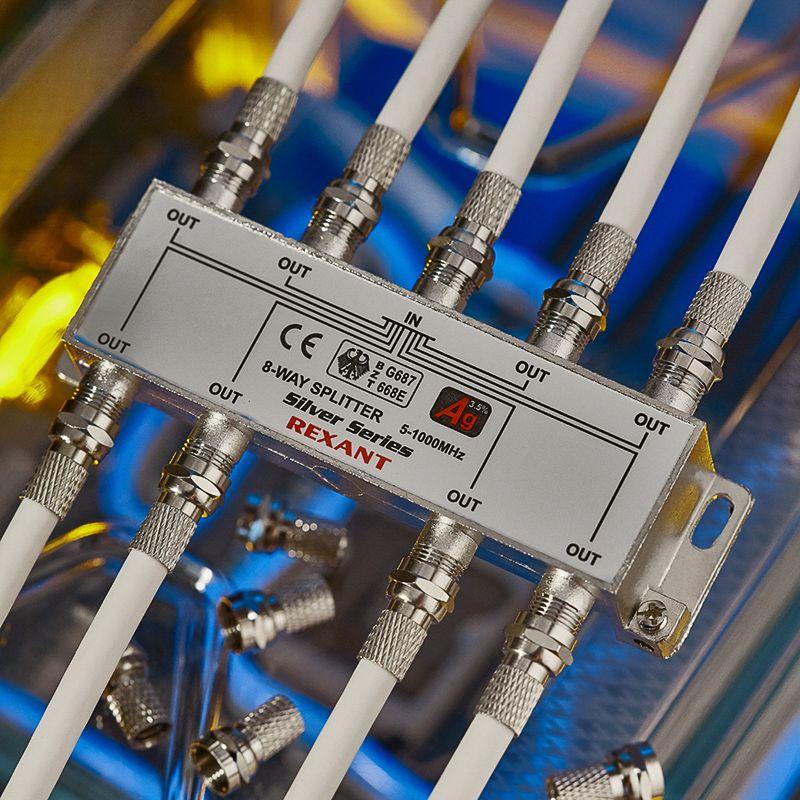 05-6105 | Делитель ТВх8 + 9шт F 5-1000 МГц (Silver) box(уп.5шт) Rexant