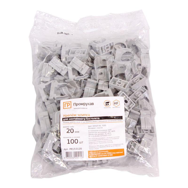 Держатель для труб (клипса) d20мм для монтажного пистолета в п/э сер. Промрукав PR13.0120