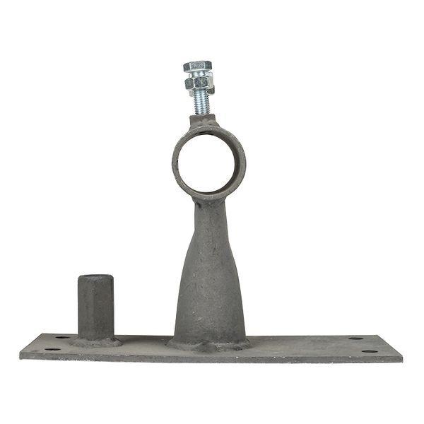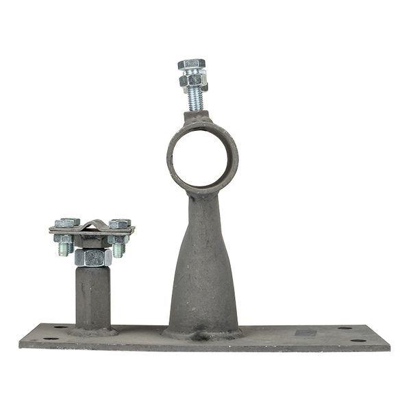 Предназначен для крепления молниеприёмных матч от 5 до 7 метров на вертикальную поверхность. Организован вынос молниеприёмника на 110 мм, как необходимый зазор от горючей поверхности.