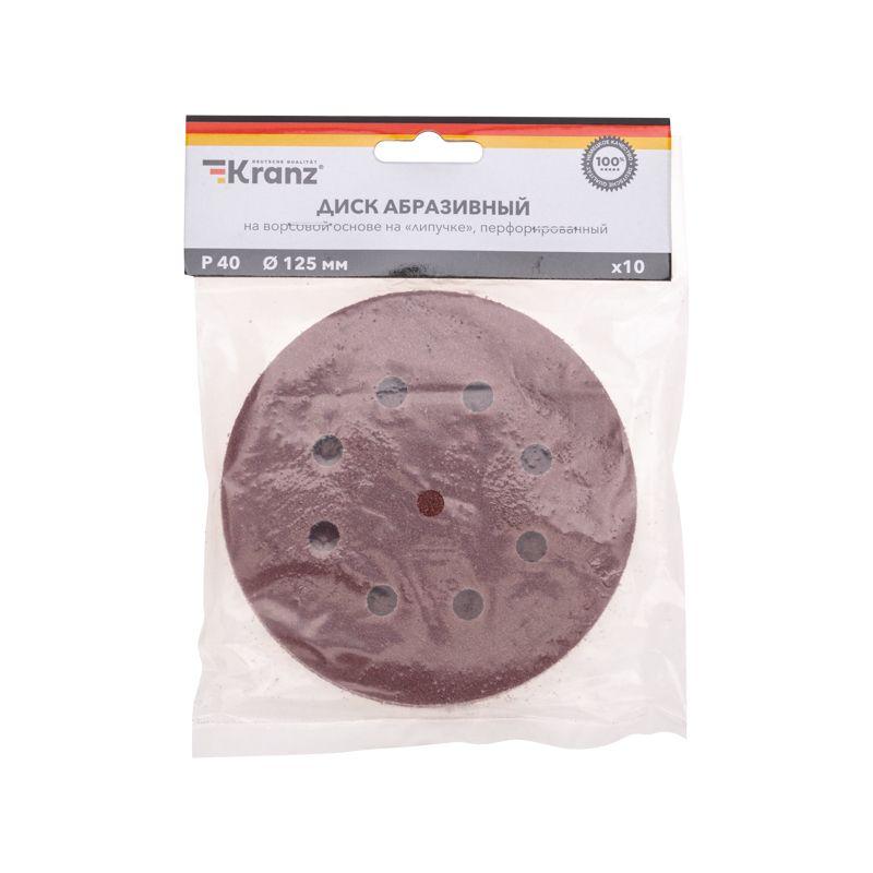 Диск абразивный перфорированный на ворсовой основе на липучке P40 125мм (уп.10шт) Kranz KR-91-1164