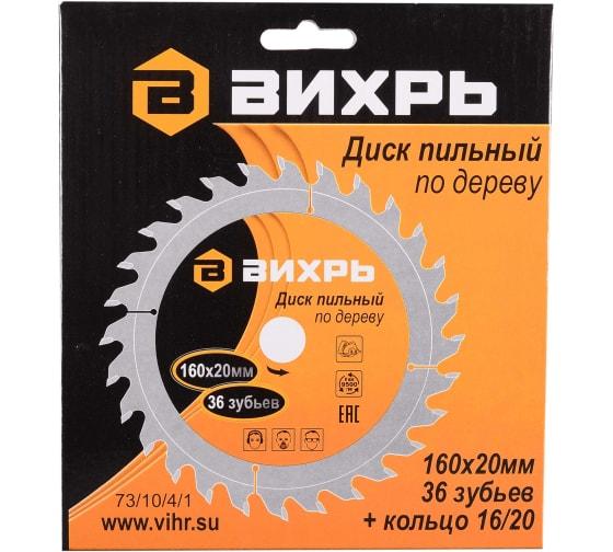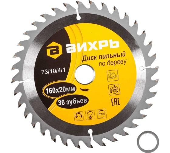 Диск пильный по дереву 160х20мм 36 зубьев+кольцо 16/20 Вихрь 73/10/4/1