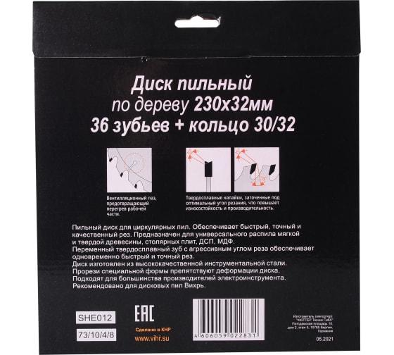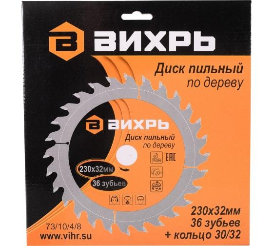 Диск пильный по дереву 230х32мм 36 зубьев+кольцо 30/32 Вихрь 73/10/4/8