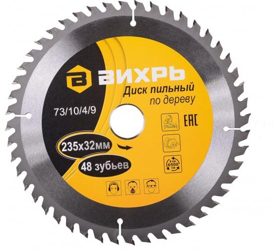 Диск пильный по дереву 235х32мм 48 зубьев+кольцо 30/32 Вихрь 73/10/4/9
