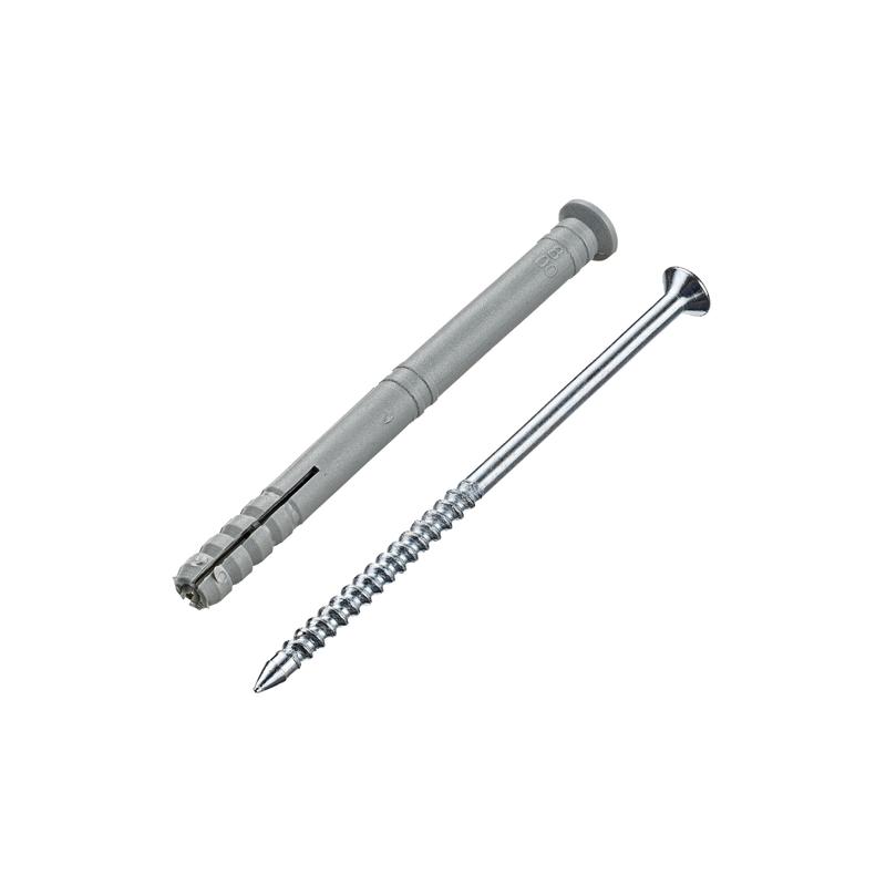 Дюбель-гвоздь SM-L состоит из следующих элементов: дюбель с потайным бортиком и двухсегментной распорной зоной, распорный элемент – специальный гвоздь с потайной головкой с крестообразным шлицем PZ и усиленным подголовником. Дюбель изготовлен из полипропилена, гвоздь – из углеродистой стали, покрытие – желтый цинк. Дюбель-гвоздь предназначен для крепления строительных материалов и изделий к основаниям из бетона, полнотелого кирпича, строительного камня. Применяется для сквозного монтажа кронштейнов, дверных коробок, оконных рам, кабельных каналов, обрешетки, гипсокартонных листов (ГКЛ), гипсоволокнистых листов (ГКЛ) и т.д. Для установки необходимо предварительно просверлить отверстие. Прочность крепежа достигается расклиниванием дюбеля в отверстии гвоздем в момент удара молотком. С помощью крестообразного шлица на головке гвоздя можно легко ослабить или усилить крепеж, демонтировать его. Дюбель-гвоздь с потайным бортиком устанавливается «заподлицо», т.е. его шляпка утапливается, благодаря чему возможно производить крепежные работы без последующего выравнивания поверхности.