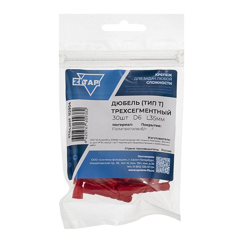 112954 | Дюбель распорный 6х35 тип Т трехсегментный (пакет) (уп.30шт) Zitar