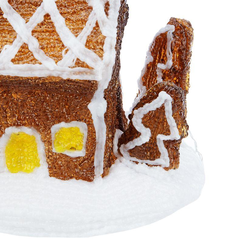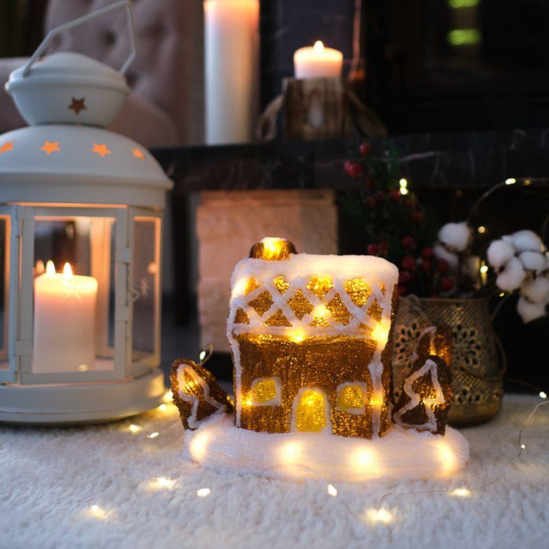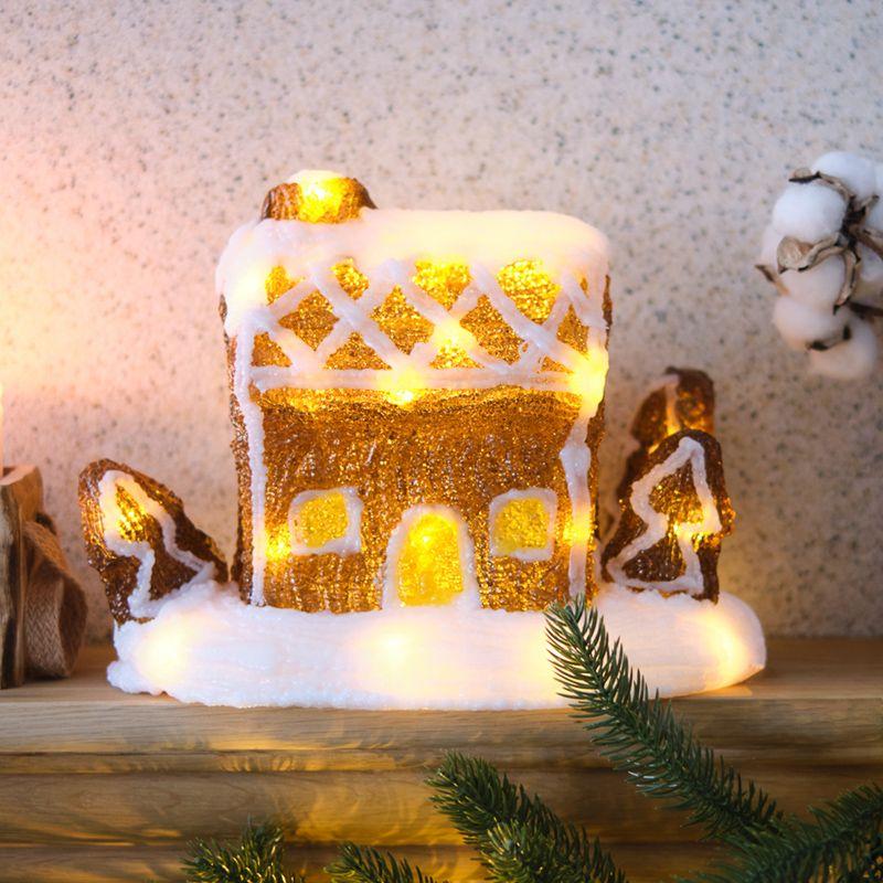 Акриловая светодиодная фигура «Пряничный домик» высотой 20 см создаст неповторимое ощущение уюта и тепла в вашем доме, разнообразит привычную обстановку, наполнит мягким приятным светом пространство вокруг. Декоративное изделие питается от 3 батареек типа АА и не требует подключения к электросети, является абсолютно безопасным в использовании, поэтому его можно разместить в любом удобном месте, включая детские комнаты. Акрил двух оттенков — золотистого и белого, формирует красивую композицию в виде домика с заснеженной крышей. 30 светодиодов эффектно подсвечивают композицию изнутри и практически не нагреваются — об изделие невозможно обжечься.