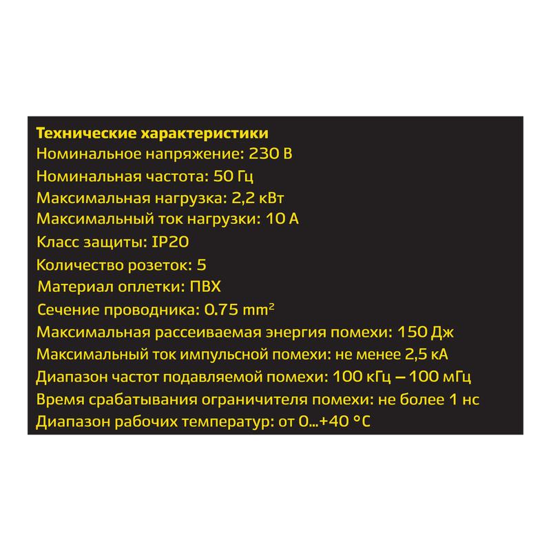 Фильтр сетевой 5х3м с/з со шторками ПВС 3 IP075 2USB 2200Вт 10А бел. Duwi 32592 5
