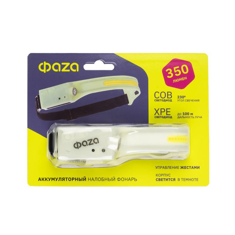 5061729 | Фонарь аккумуляторный налобный ФАZА AccuFH3-L3W/L3W-GLOW 3Вт COB+3Вт XPE (5режимов упраление жестами) IP44 ФАZА