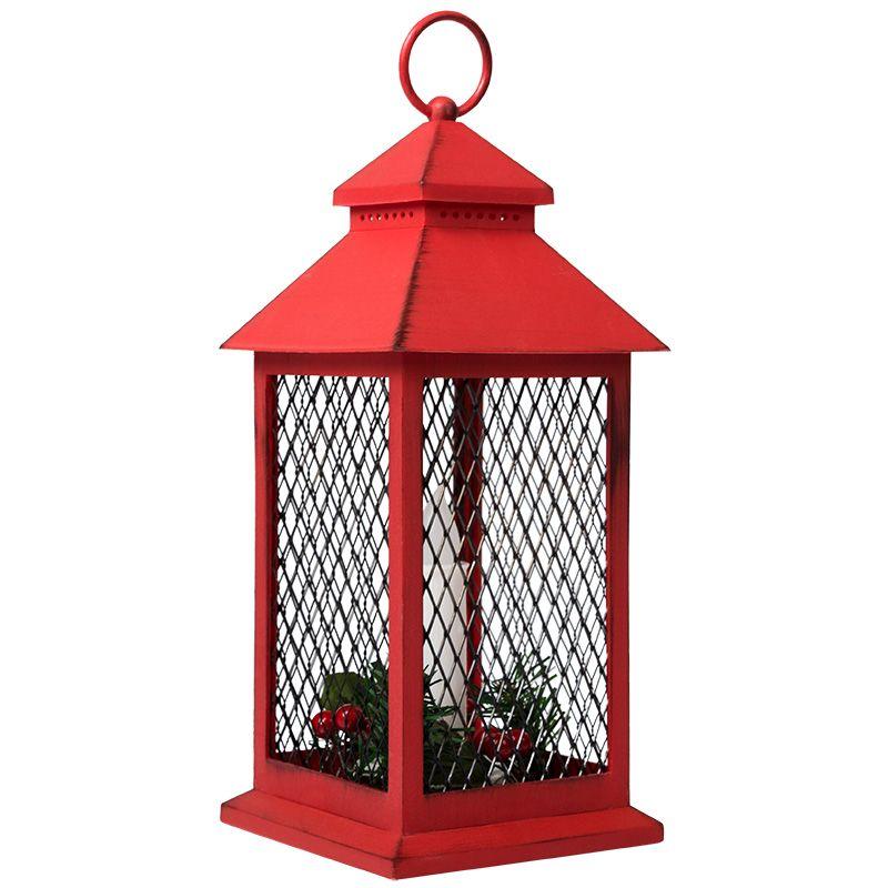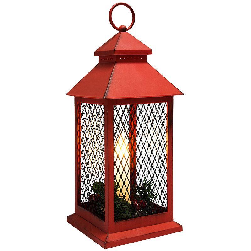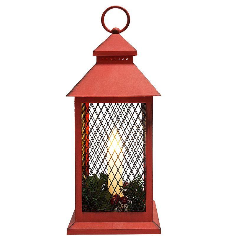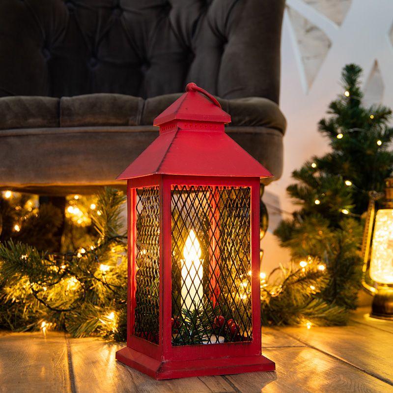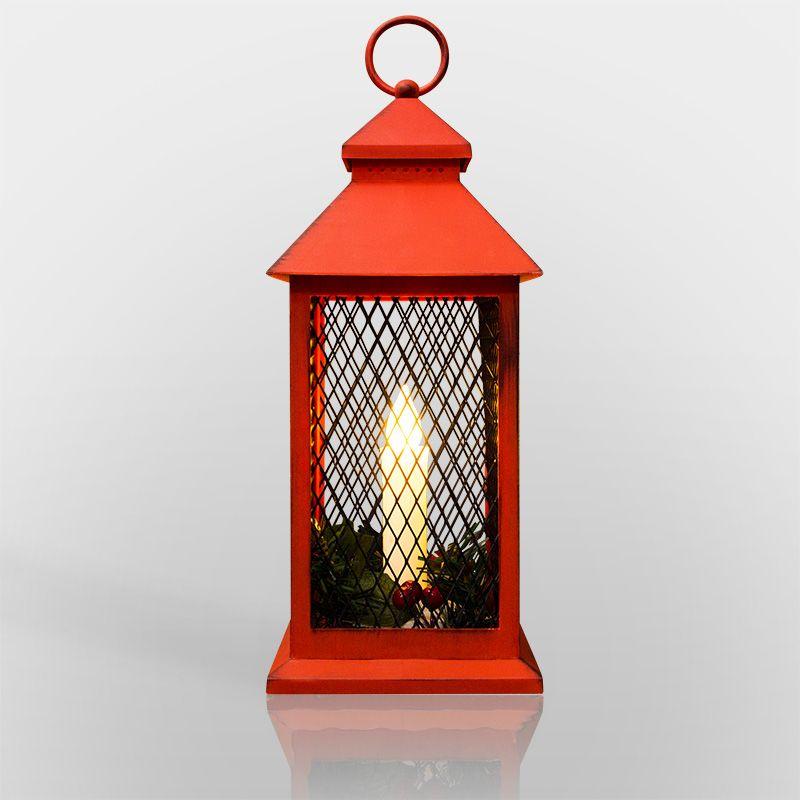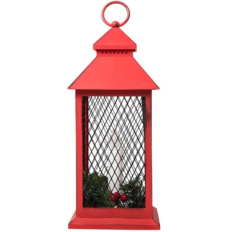 Фонарь декоративный со свечкой красный корпус 13.5х13.5х30.5см тепл. бел. Neon-Night 513-041