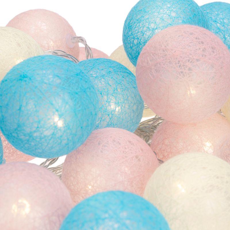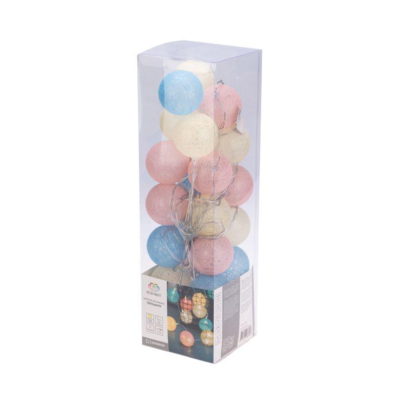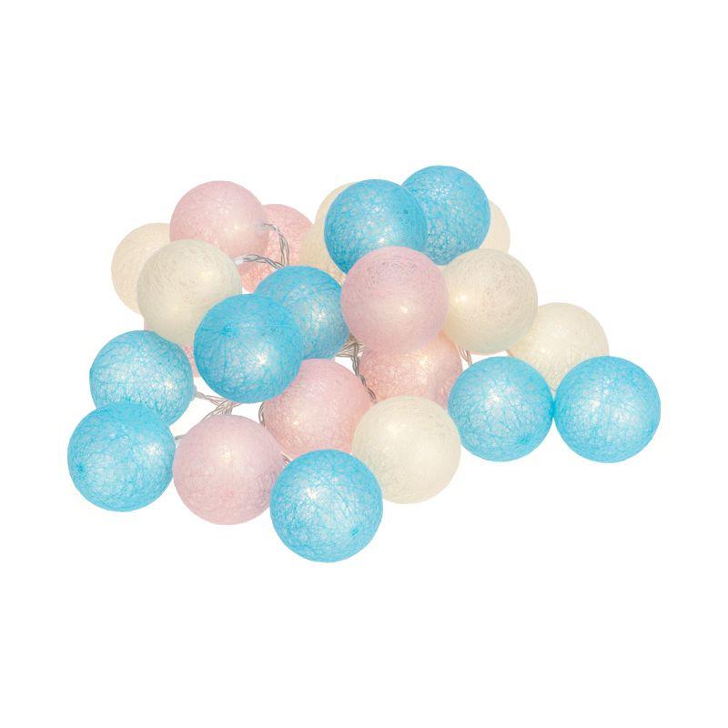 На проводе, помещенном в прозрачную изоляцию из ПВХ, располагаются 25 волшебных круглых фонариков из хлопковых нитей, способных превратить любое помещение в уникальное пространство.