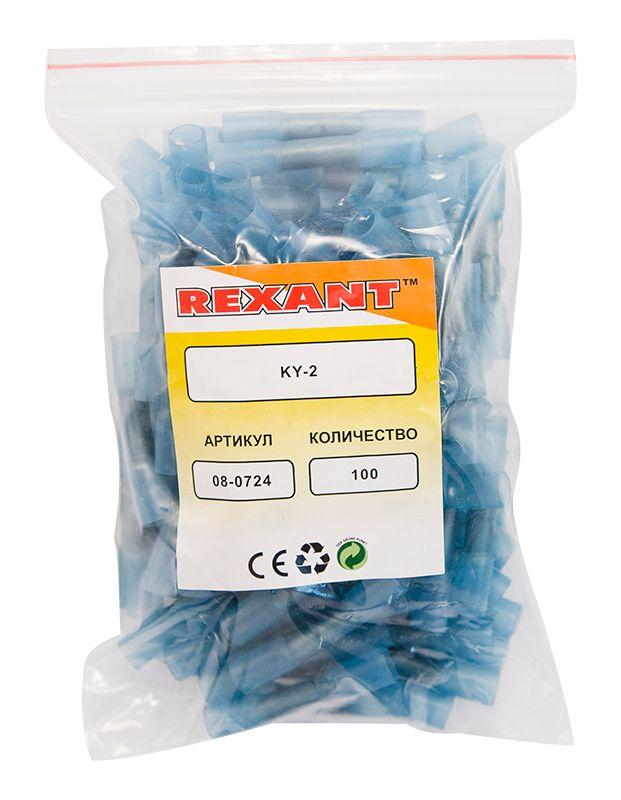 08-0724 | Гильза соединительная изолированная термоус. СГИ-т L-37мм 1.5-2.5кв.мм KY-2 син. (уп.100шт) Rexant