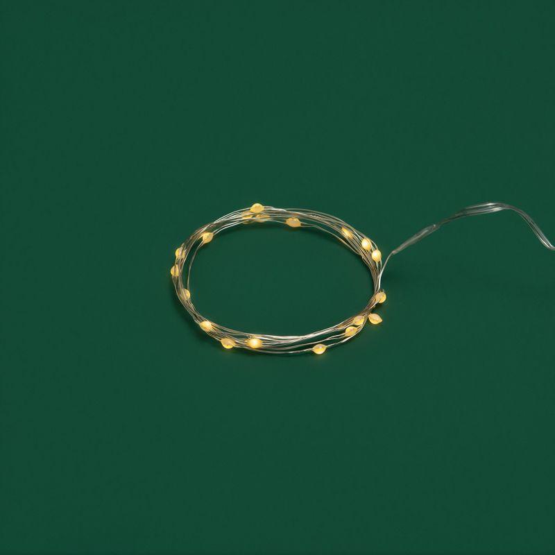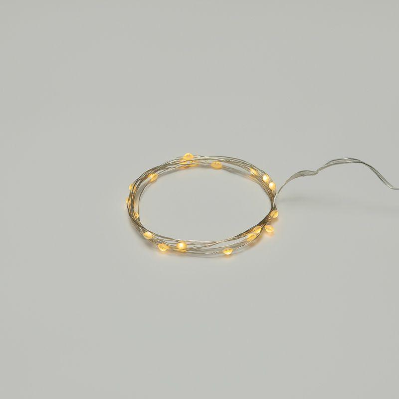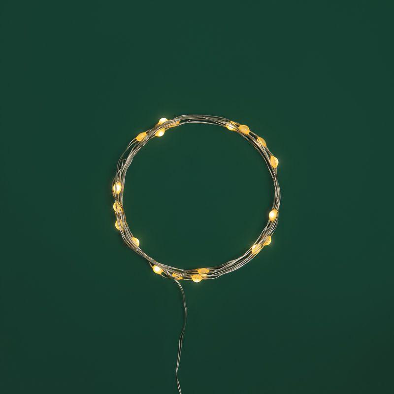 Гирлянда состоит из тонкого провода длиной 2 метра, с расположенными на нем 20 теплыми белыми долговечными светодиодами.