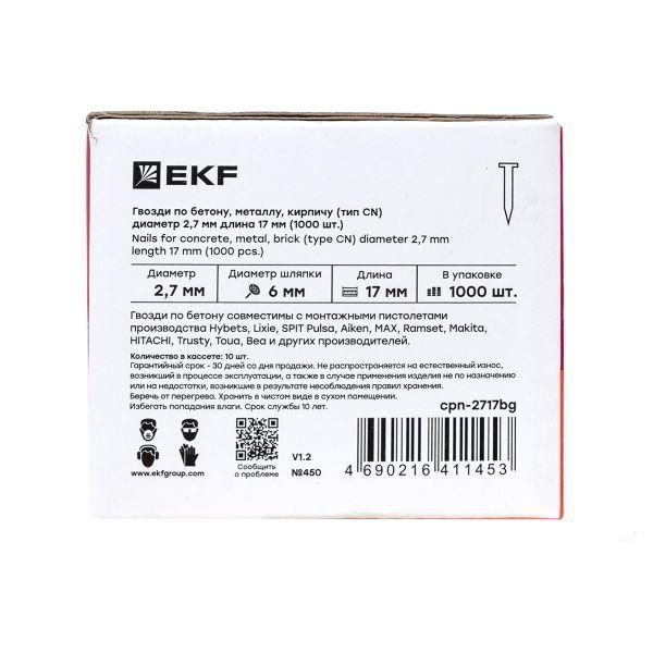 Гвозди для монтажного пистолета по бетону металлу кирпичу (тип CN) d2.7мм дл.17мм (уп.1000шт) Expert EKF cpn-2717bg