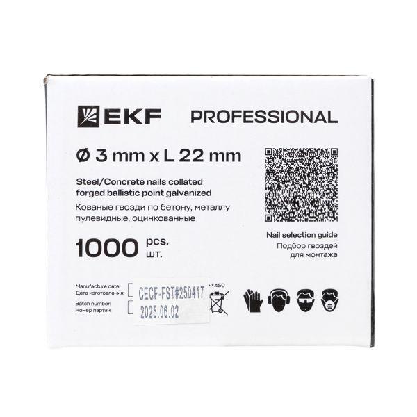 Гвозди кованные для монтажного пистолета по бетону металлу (тип CN) Bullet Type d3мм дл.22мм цинкование (уп.1000шт) Expert EKF cpn-3022bp