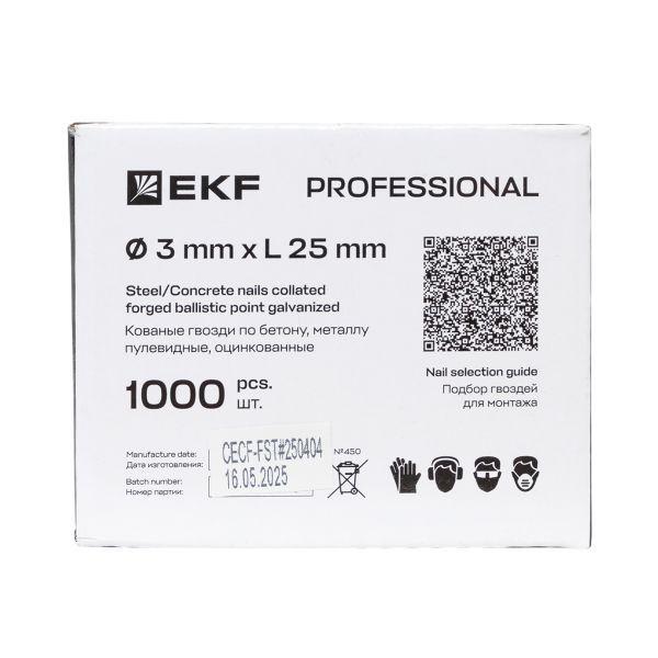 Гвозди кованные для монтажного пистолета по бетону металлу (тип CN) Bullet Type d3мм дл.25мм цинкование (уп.1000шт) Expert EKF cpn-3025bp