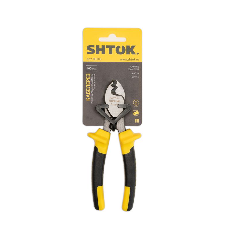 Рукоятки диэлектрического кабелереза SHTOK 1000В 08108 выполнены из PP/TPR пластика для удобства работы.