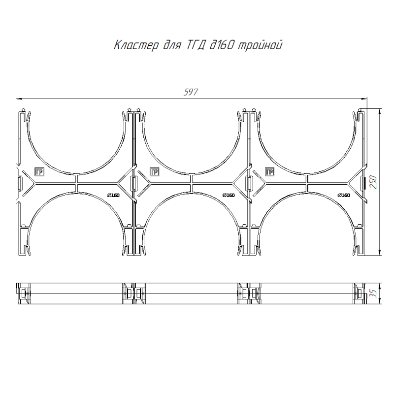 Кластер тройнойной двухсторонний для двустен. труб d160мм Промрукав PR13.02583