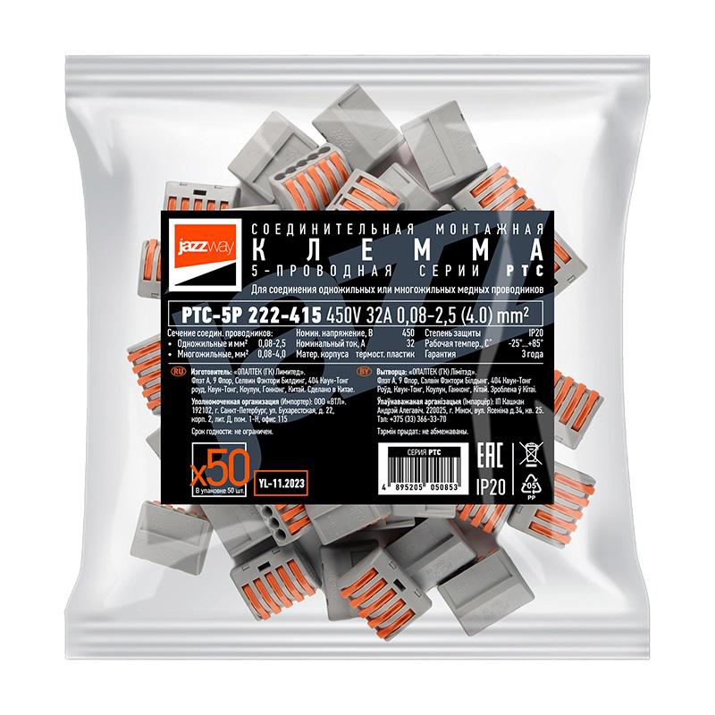 5050853 | Клемма монтажная рычажного соединения PTC-5P 222-415 450В 32А 0.08-2.5(4.0)кв.мм Jazzway