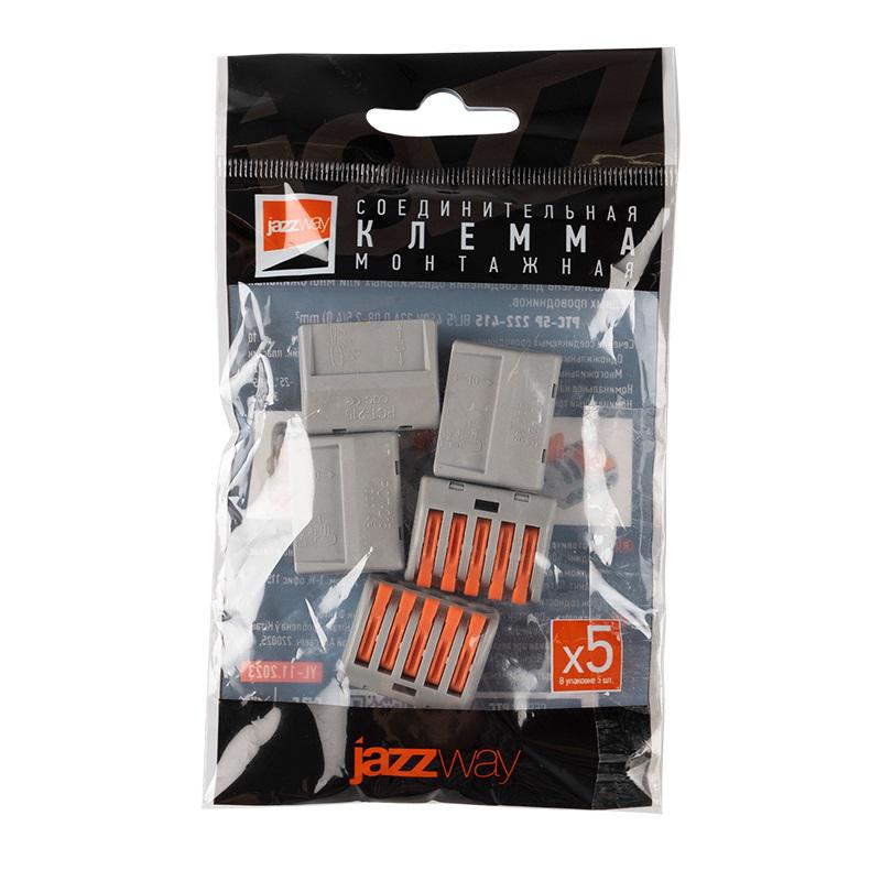5050761 | Клемма монтажная рычажного соединения PTC-5P 222-415 BL/5 450В 32А 0.08-2.5(4.0)кв.мм Jazzway