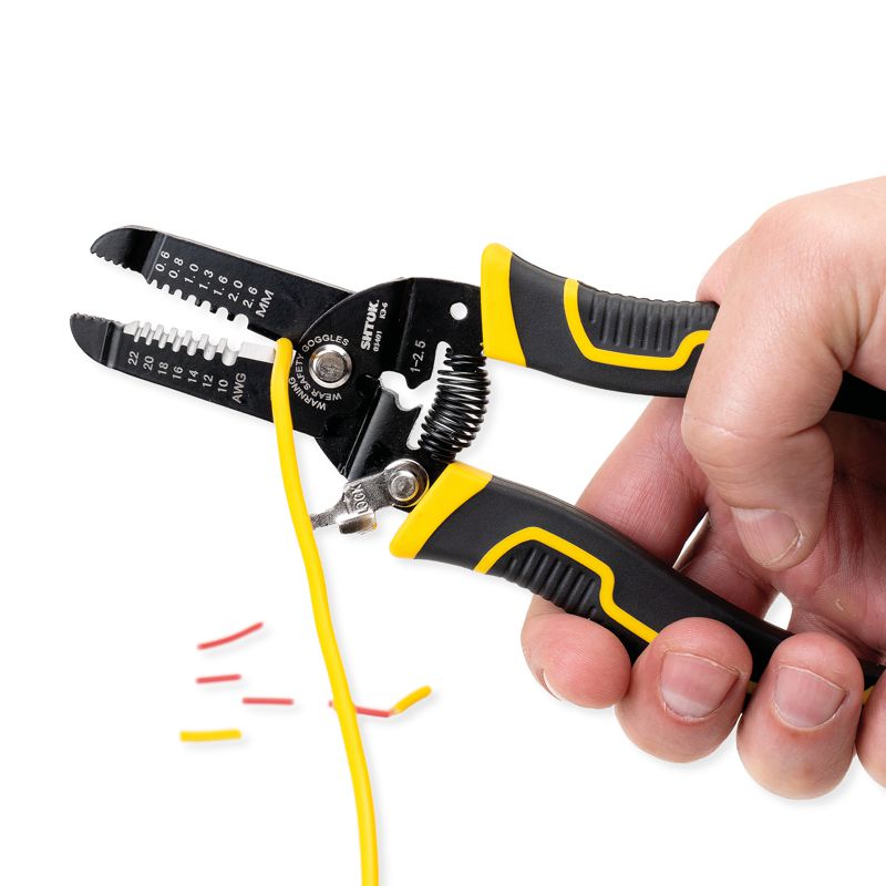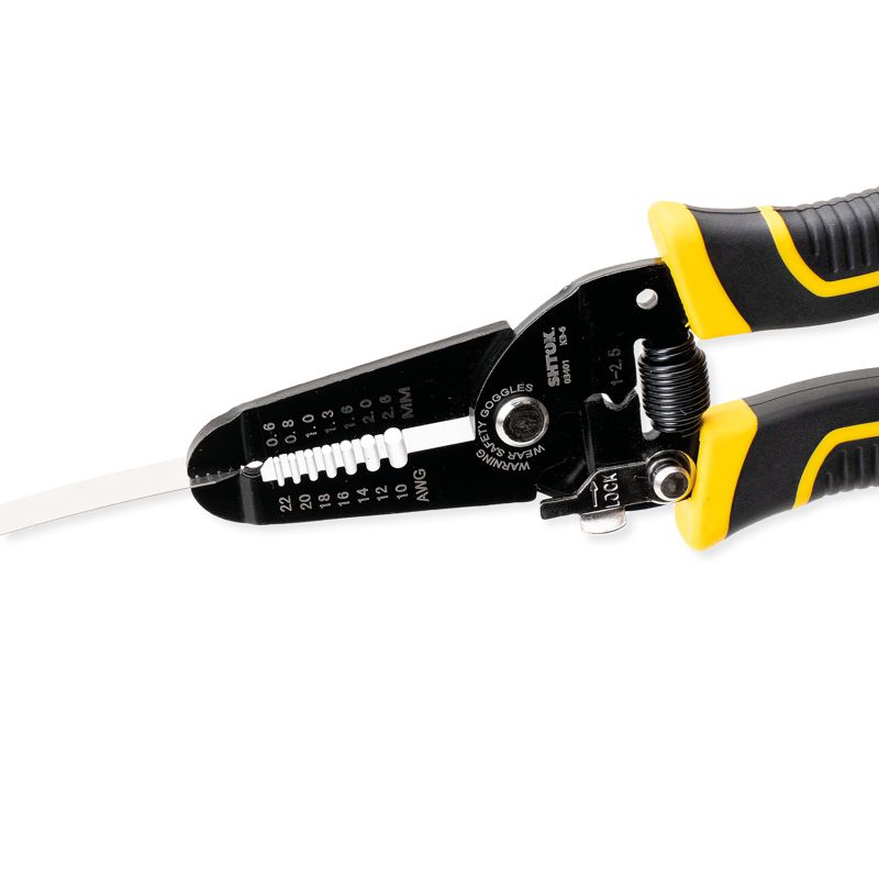 Электромонтажные клещи SHTOK КЭ-6 03401 служат для снятия изоляции с проводов без повреждения жилы, а также для их отрезания. Инструмент обладает губками и высокопрочной стали, стойкой к нагрузкам. Возвратная пружина снижает усилие во время резки кабеля. Благодаря фиксатору ручек, клещи можно компактно и безопасно хранить.