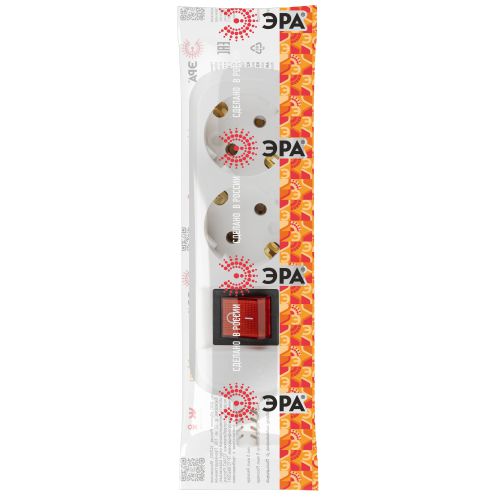 Б0071871 | Колодка 2-м KX-2es с заземл. с выкл. бел. Эра