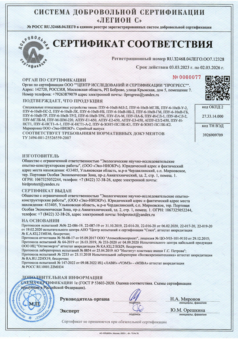 ЦБ-00002923 | Комплект птицезащитного устройства ПЗУ-6-10кВ-МЛ-2 (КЗ) Эко-НИОКР