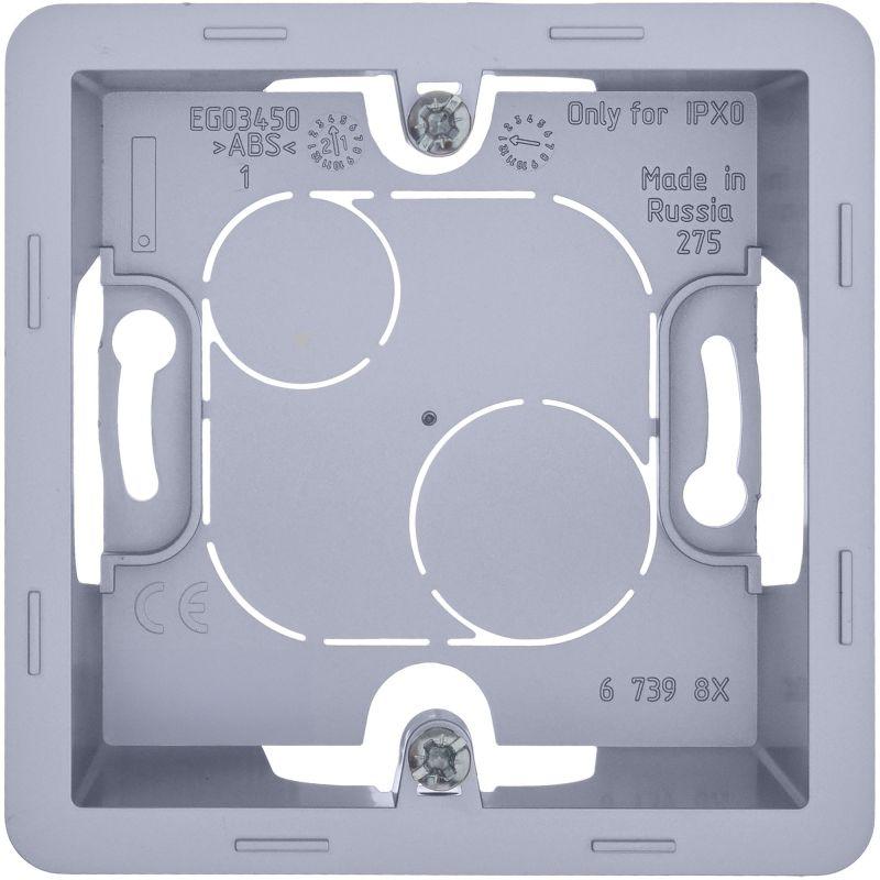 Коробка для накладного монтажа Inspiria, 1 пост, цвет "Алюминий". Коробка предназначена для накладного монтажа механизмов серии Inspiria и позволяет установить 1 механизм из данной коллекции. Конструкция коробки позволяет подключить провода наиболее удобным способом.