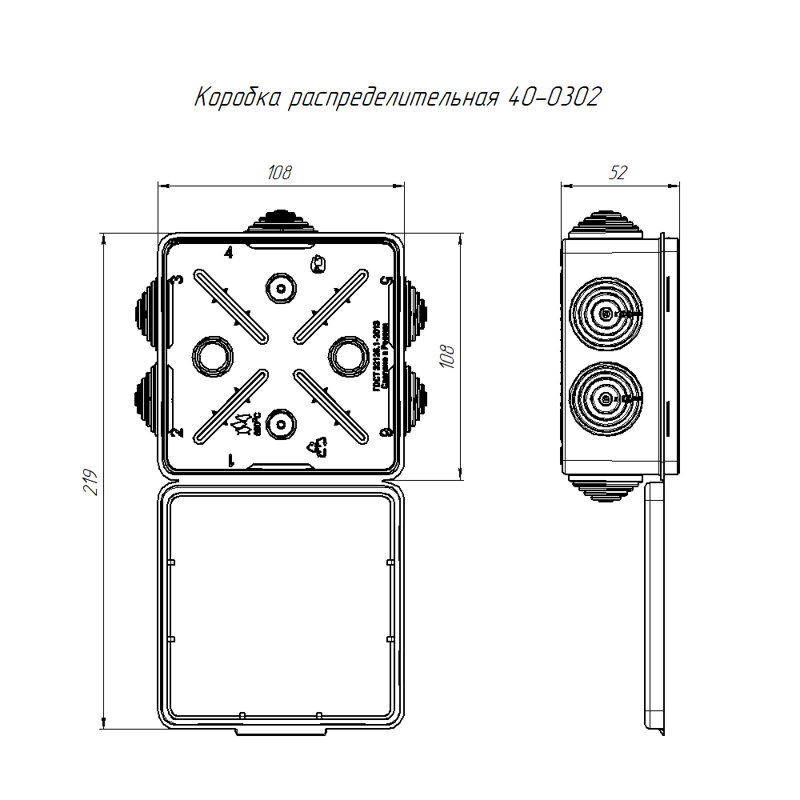 40-0302 | Коробка распределительная ОП 100х100х50мм безгалоген. (HF) для прямого монтажа сер. Промрукав