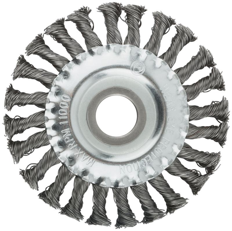 Дисковая прямая корщетка-насадка для УШМ MOS предназначена для грубой обработки дерева и металла, зачистки сварных швов, снятия краски и ржавчины. Стальная витая проволока обеспечивает высокую скорость и эффективность работы. Корщетка типа «колесо» наиболее эффективна при обработке стыков, углов, пазов и различных труднодоступных мест.