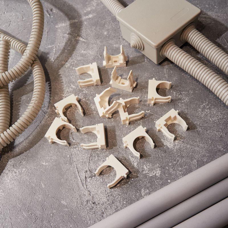 Изделие оснащено фиксаторами типа "шип-паз": при установке возможно соединять крепежи-клипсы различных диаметров.
