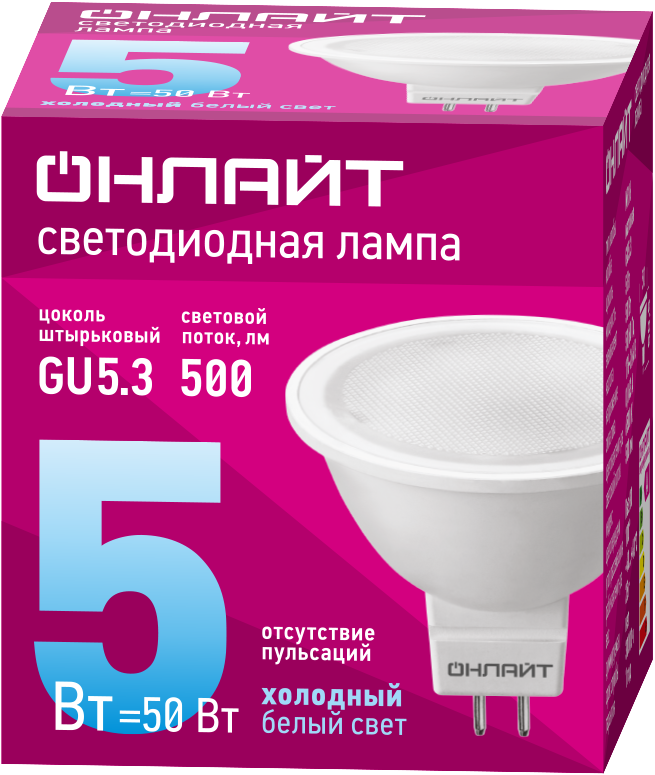 61133 | Лампа светодиодная 61 133 OLL-MR16-5-230-6.5K-GU5.3 5Вт 6500К холод. бел. GU5.3 500лм 176-264В ОНЛАЙТ