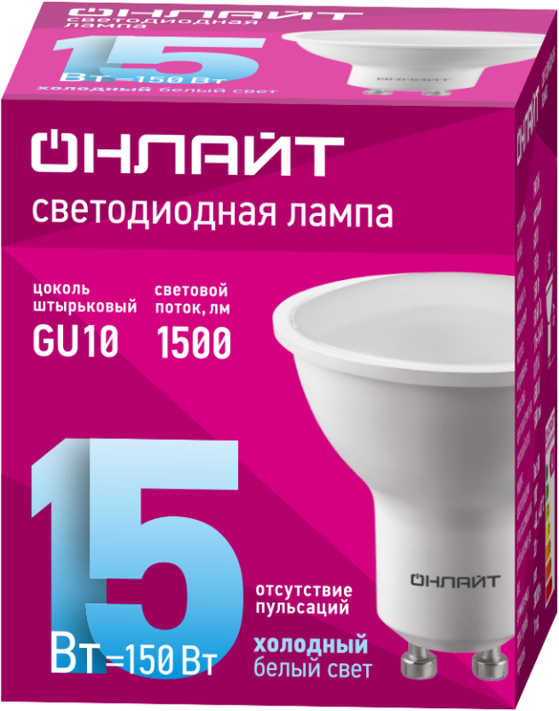 90469 | Лампа светодиодная 90 469 OLL-PAR16-15-230-6.5K-GU10 15Вт 6500К холод. бел. GU10 1500лм 220-240В ОНЛАЙТ