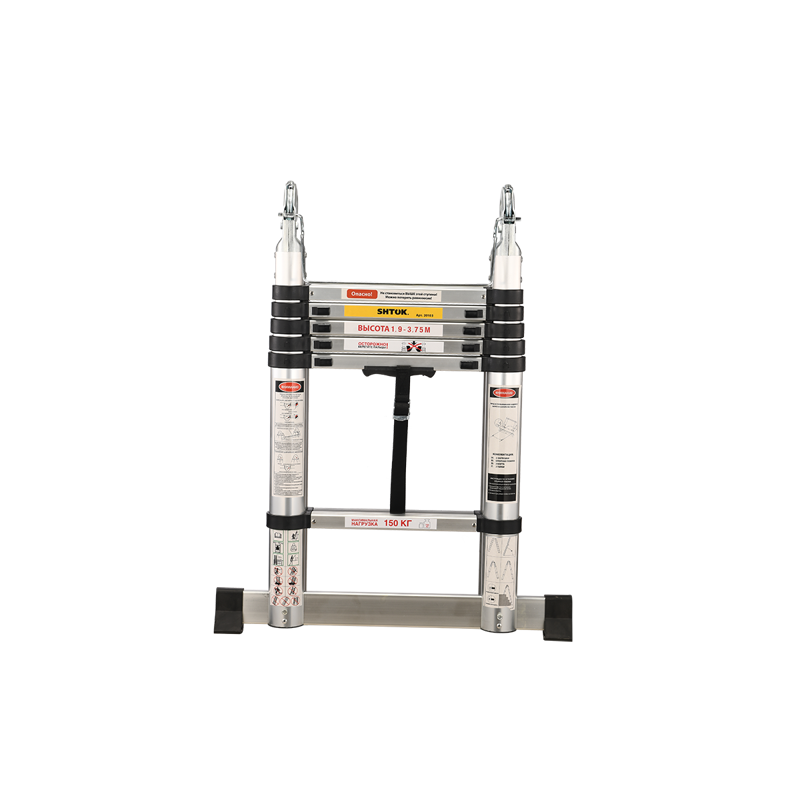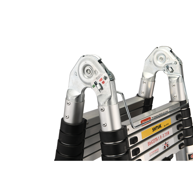 Телескопическая стремянка-лестница 1.9-3.75 м SHTOK 20103 – надёжный и функциональный инструмент, который пригодится для монтажа внешней и внутренней рекламы, систем кондиционирования и прочих монтажных работ.