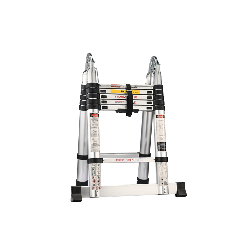 Можно использовать и как телескопическую лестницу, и как стремянку. Благодаря этому расширяется функциональность и сфера применения.