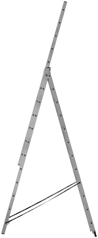 Усиленная трехсекционная алюминиевая лестница FIT РОС рассчитана на нагрузку в 150 кг, подходит для бытового и промышленного применения. Рабочая площадка наверху отсутствует. Модель обеспечена следующими элементами безопасности: ножки закрыты противоскользящими накладками, ременная траверса фиксирует расхождение, надёжный стопорный рычаг держит соединяемые элементы. Двухстороннее расположение ступеней позволяет выполнять подъём в любом направлении. Секции можно использовать отдельно, а также собирать их в различных вариантах, что обеспечивает широкий диапазон применения лестницы.
