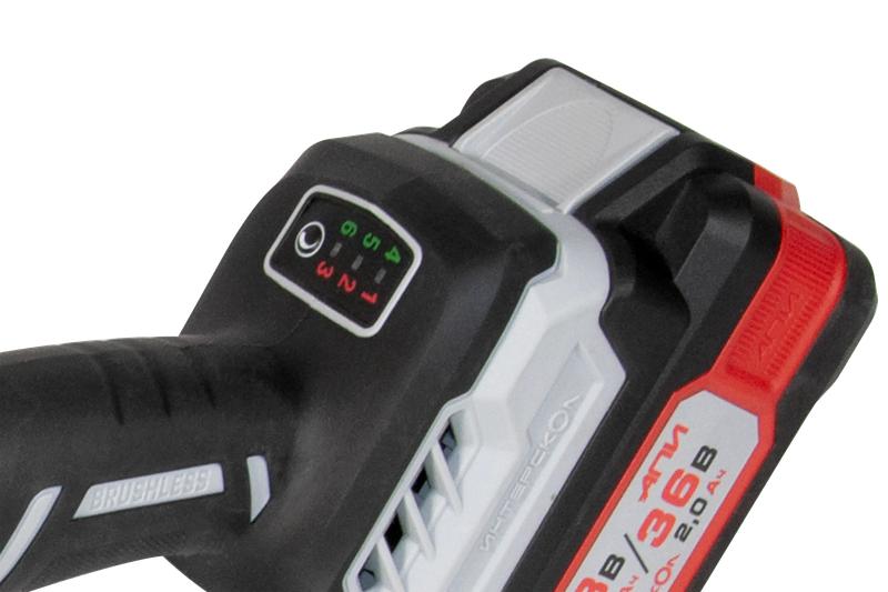 Машина шлифовальная угловая аккумуляторная бесщеточная УШМ-125/36ВМЭ 125мм АПИ 36В 2 АКБ 2.0А.ч ЗУ ИНТЕРСКОЛ 956.2.2.70