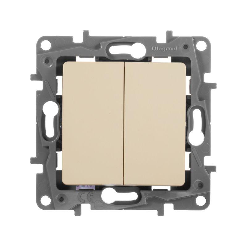 Переключатель двухклавишный ETIKA для скрытого монтажа, номинальный ток 10 А. Предназначен для управления двумя нагрузками с одного или с двух мест.