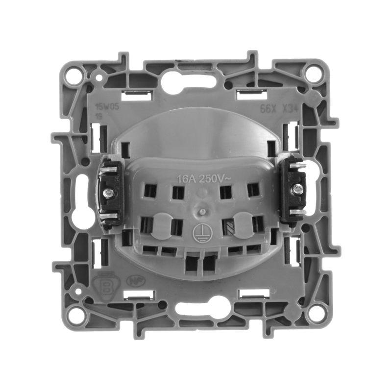 Розетка без заземления ETIKA для скрытого монтажа. Применяется в зданиях с проводкой без заземления (без защитного проводника). Рекомендуются к применению в квартирах и помещениях с детьми. Шторки осуществляют защитную функцию путём ограничения доступа к токоведущим контактам. Доступ открывается только при подключении вилки.