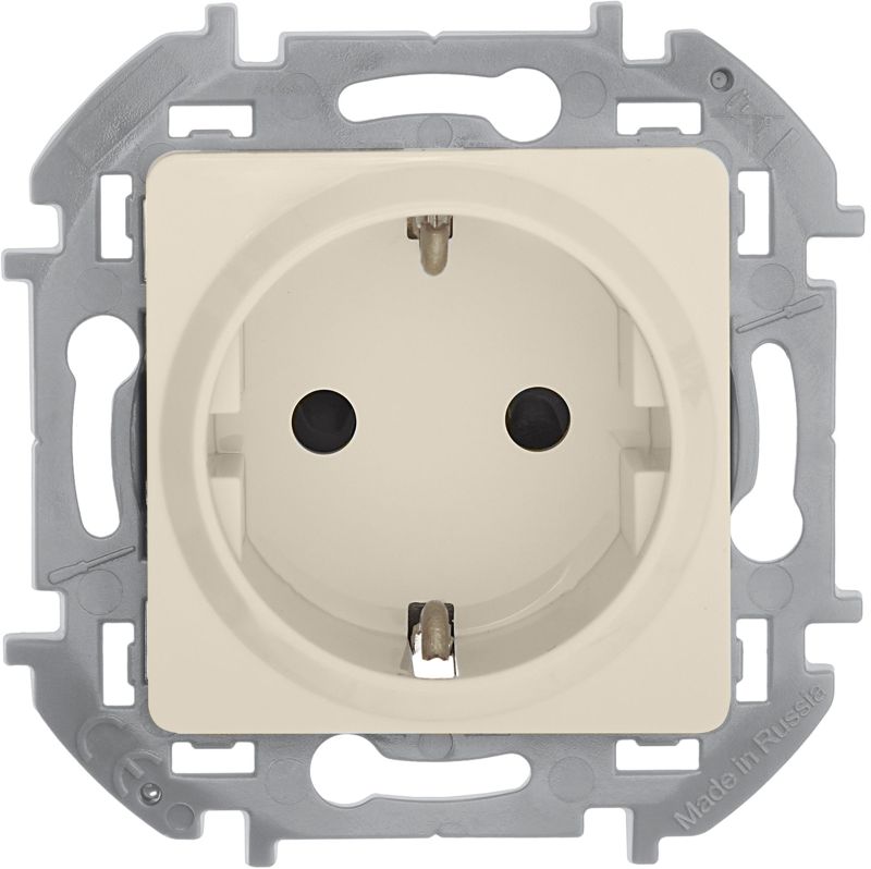 Розетка с заземлением, с защитными шторками для скрытого монтажа Inspiria, цвет "Слоновая кость", максимальный ток 16А, напряжение ~250В, максимальная мощность 3680Вт, винтовые зажимы. Применяется для присоединения однофазных электрических потребителей к сети переменного тока в зданиях с проводкой с заземлением (с защитным проводником).