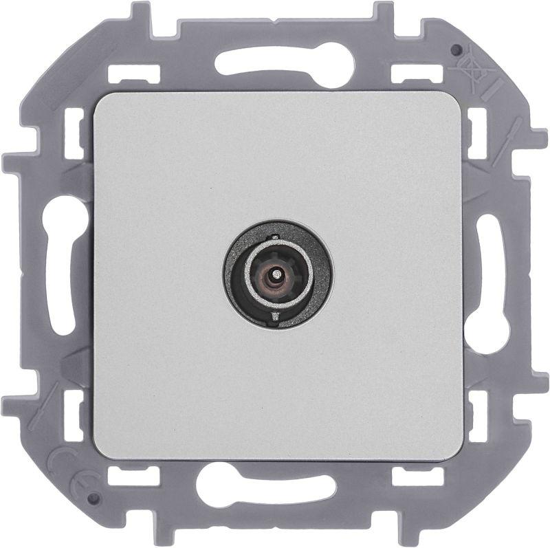 Розетка телевизионная для скрытого монтажа Inspiria, оконечная для схемы "шлейф", затухание 10дБ, 4-862МГц, цвет "Алюминий". Предназначена для подключения нескольких ТВ приемников к антенне, используется в схеме "шлейф" и устанавливается в конце линии.